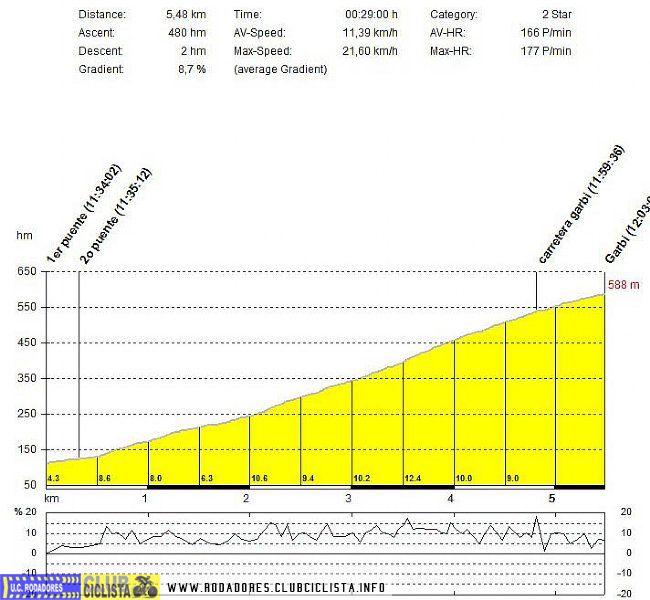 URL: https://www.rodadores.clubciclista.info/es/alt-180-altimetrias/1-la-frontera-garbi-estivellaDatos técnicos