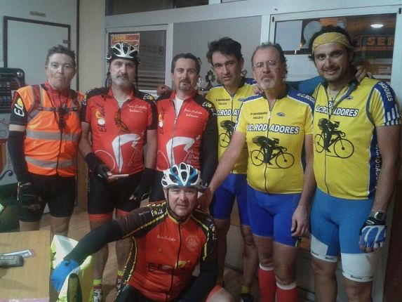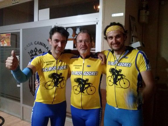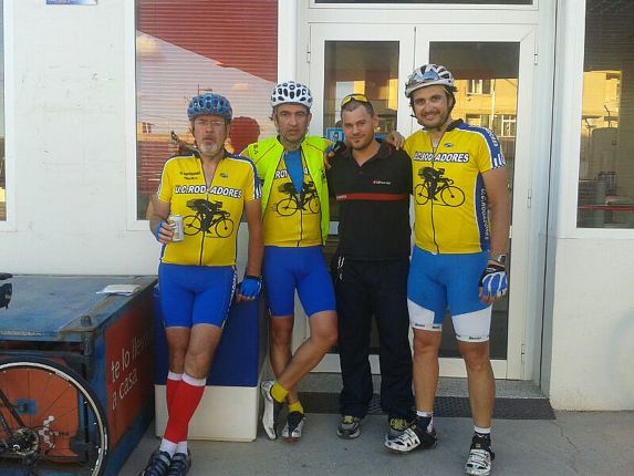 Entre mordisco y mordisco, el whatsapp ha echado humo. Los amigos más cercanos, en los distintos grupos que tenemos, uno para los que solemos quedar fuera de la bicicleta, otro para los que estamos chiflados por los puertos, otro para... Pues bien, todos esos amigos estaban pendientes de nosotros. Puede ser pretencioso decirlo, pero es una verdad como un templo. En el fondo, Julián, Miguel Ángel y yo estábamos escribiendo una página en los veintiún años de Historia de nuestro club. Al fin y al cabo, ésta es la primera vez que un Rodador participa en un evento de esta singularidad. Nunca antes lo habíamos conseguido. Pues bien, uno de los que siempre quisieron participar, y de hecho fue uno de los pioneros con las aventuras de 200 kilómetros, es Moiso. Alguno se sorprendió cuando, al recibir un mensaje del susodicho, afirmé sin vacilaciones "Mira que he conocido buena gente en la bicicleta y tengo grandes amigos, pero el compañero con mayúsculas encima de la bicicleta es este tío. Cuesta encontrar a alguien tan legal y tan dispuesto a echarte una mano cada vez que le necesitas. ¡Tengo mucha suerte!". Más tarde, se vería que esta reflexión en voz alta no debía tomarse a la ligera. A veces, cuando uno no piensa mucho las cosas, sino que dice lo que piensa sin más, acaba pronunciando palabras que son verdades como puños.