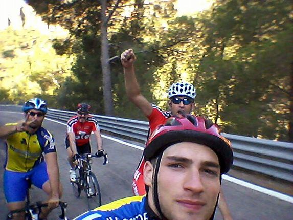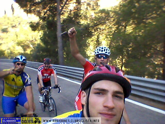 17 de mayo. Esta semana no he hecho nada de rodillo. Ni he podido ni me han quedado ganas. Me he presentado en Bétera para esperar, esta vez sí, a mis amigos Rodadores. Y recalco lo de amigos, porque en esta ocasión se han sumado a la cita dos con mayúsculas a los que se les echaba muchísimo de menos: Miguel y Pere. Hemos conformado un grupito muy agradable, sin importarnos el tiempo, subiendo juntos el Pico del Águila cual miembros del Club de Fans de Pere Mir que somos. Cada vez que subo un puerto con Pere me acuerdo del día de la Croix de Fer y Alpe d'Huez y me entran escalofríos. De Miguel los recuerdos son más recientes, desde Hautacam hasta la Bola del Mundo. Grandes entre los grandes. Por supuesto, también estaban Chevi y Axel animando el cotarro, además de la siempre agradable reincorporación de Vicente Ferrándiz tras su caída meses atrás.
