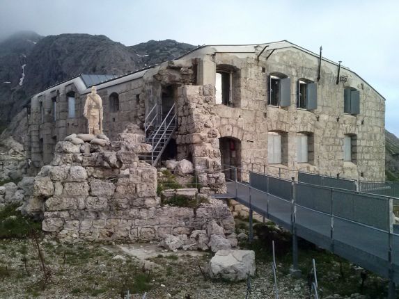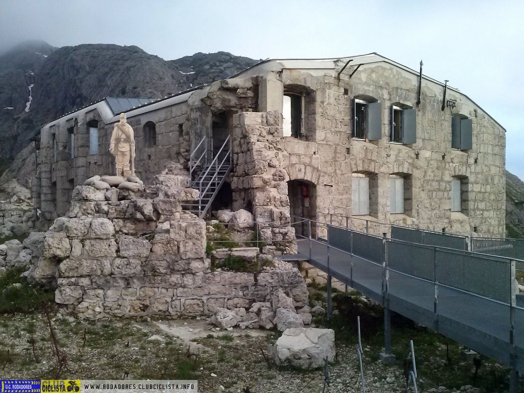 Nuestra furgocaravana transita a velocidades relativamente bajas. Las carreteras dolomíticas no invitan a correr, menos si cabe cuando deseas disfrutar del paisaje y conduces un vehículo catalogado como turismo pero que en la práctica es más bien pesado. Realizamos el camino inverso al final de la Maratona, para acabar en un museo de la Primera Guerra Mundial, muy próximo a la cima del Passo di Falzarego. Es importante conservar los vestigios de antiguos despropósitos para concienzarse de que jamás deben volver a ocurrir.