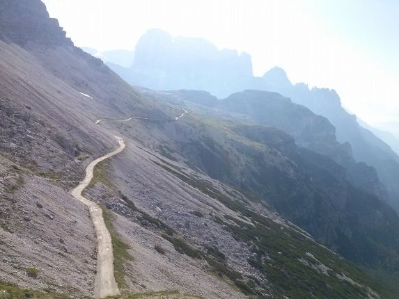 Si bien el kilómetro anterior me recordaba a la aventura con Miguel Ángel en el Campello meses atrás, por la forma de andar en bicicleta; en este última parte me conciencio de tener ante mí algo parecido al Marie Blanque. Siempre me gusta comparar los puertos con algo que haya hecho alguna vez, con objeto de convencerme de mi capacidad para afrontar el desafío. No obstante, tal como esperaba de antemano, si bien las matemáticas admiten parangón, la mística jamás lo hace, y las Tres Cimas de Lavaredo simplemente te envuelven en un mundo del que nunca querrías salir. Es por ello que la ascensión se puede definir simple y llanamente como un orgasmo ciclista continuo, donde cada pedalada supone una hondanada de placer inmenso y donde cada mirada al infinito trata de devorarlo para convertirlo en algo eterno.