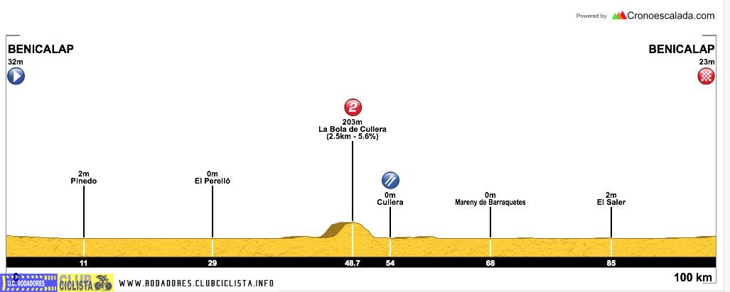 Tras las primeras escaramuzas en la montaña de este año seguimos con las etapas llanas y relativamente sencillas. Llegamos a Cullera con su cómoda subida hasta el Faro y de forma opcional la ya no tan cómoda subida al radar meteorológico más conocido como la Bola, con su rampa final por encima del 20%.