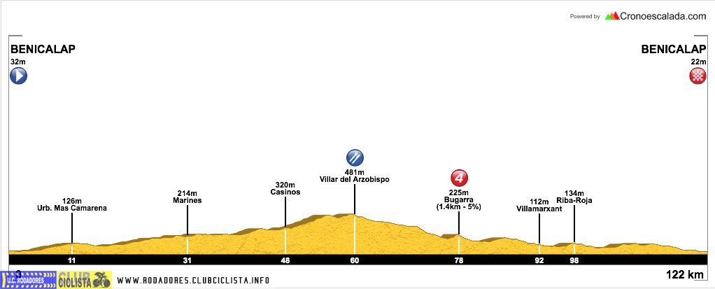 Comenzamos el mes de Mayo con una etapa típica "rompe piernas". La ida hasta Villar del Arzobispo se puede hacer muy dura dependiendo del ritmo que se lleve así que nos tomaremos la vuelta con más tranquilidad y un terreneo siempre favorable a excepción del repecho de Bugarra.