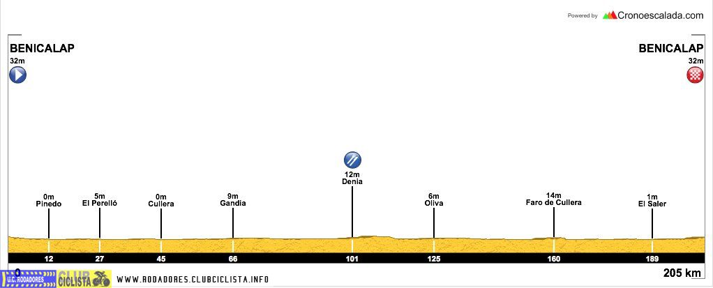 Si alguna vez os habiais preguntado si vuestro cuantekilometros es capaz de alcanzar la cifra de 200 hoy es el día que lo vamos a comprobar. Etapa completamente llana en la que podremos ir devorando kilometros uno tras otro hasta llegar a Denia. En la vuelta deberemos ir midiendo muy bien los esfuerzos ya que las horas y los kilometros enciam de la bici pasarán factura.