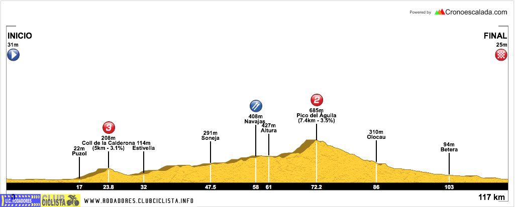 En esta ocasión subiremos el Coll de la Calderona de ida desde Puzol para experimentar algunas de sus duras rampas por encima del 10%. Tras este pequeño esfuerzo nos adentraremos en la provicia de Castellón hasta la localidad de Navajas. Tras el almuerzo pondremos rumbo a Altura para subir el Pico del Águila y volver a casa.