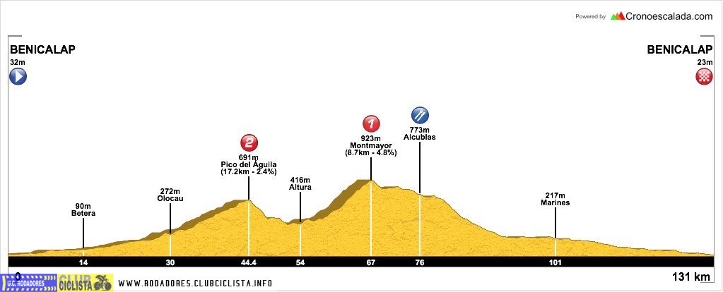 | Monte Mayor por Altura ![]() | 14,11 km | 620 m | 4 % | 8 % | 990 m | 99 | Asfalto óptimo |
