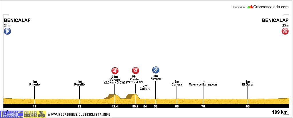 | El Castillo por Cullera ![]() | 1,69 km | 105 m | 5,9 % | 15 % | 95 m | Asfalto irregular |