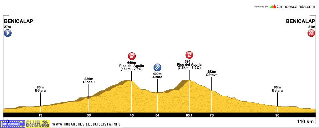 | Chirivía por Gatova ![]() | 14,98 km | 441 m | 2,8 % | 9 % | 700 m | 75 | Asfalto óptimo |