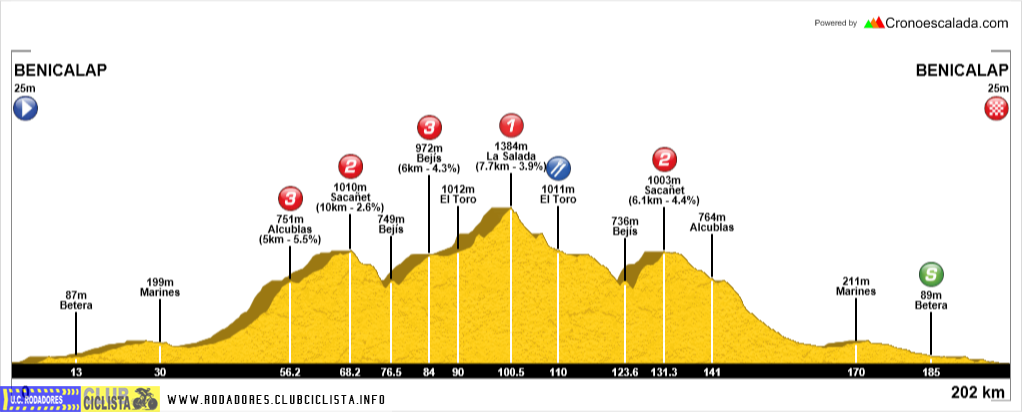 Benicalap – Betera – Alcublas – Sacañet – Bejís – La Salada (Opcional) – El Toro – Alcublas – Betera – Benicalap