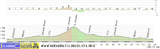 | Alcublas por Casinos ![]() | 5,93 km | 297 m | 4,7 % | 10,5 % | 746 m | 51 | Asfalto óptimo |