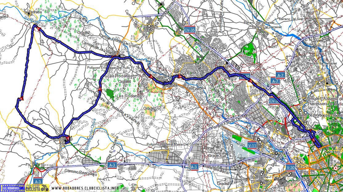 Vuelta: CV-50, Villamaxant, Ribarroja, San Antonio, L´Aldana, Burjassot, Benicalap.