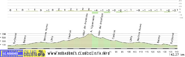 | Higueruelas por Higueruelas ![]() | 7,39 km | 276 m | 3,7 % | 7 % | 777 m | 40 | Asfalto óptimo |