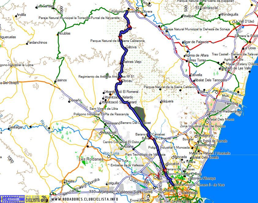 Vuelta: Chirivílla 711 m, Gátova, Olocau, Bétera, Burjassot, Benicalap.