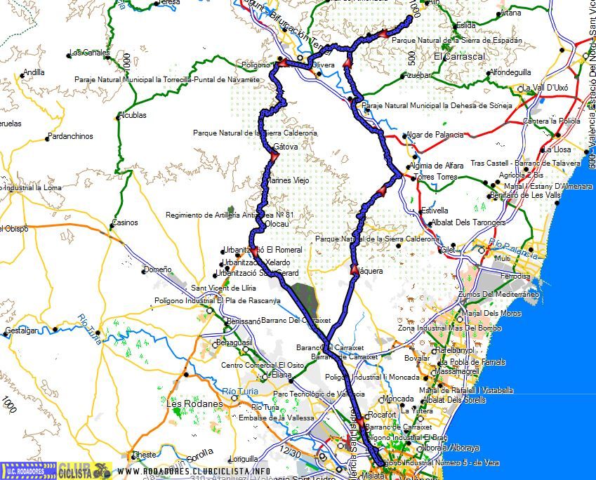 Ida: Burjassot, Bétera, Náquera, Serra, Oronet 493 m, Soneja, CV-2181, Almedijar, Puerto 795 m, 8 (Almedijar Rte. C. Viñado Tel. 619 95 99 62)