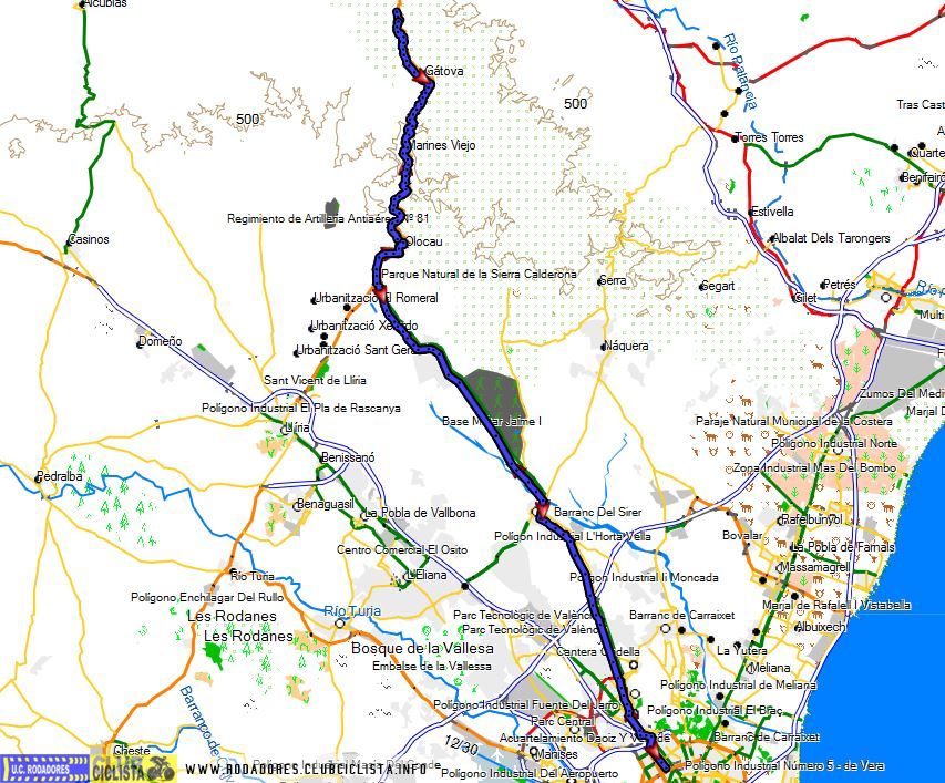 Vuelta: Marines, Olocau, Bétera, Burjassot, Benicalap.