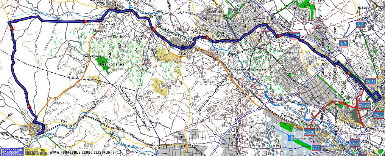 Ida: Burjassot, L´Aldana, San Antonio, Riba Roja del Turia, Villamarxant, Tuelada (CV-3770), (Cheste Canovas Tel. 962 51 10 67 o Ret. Castilla Tel. 962 51 08 74).