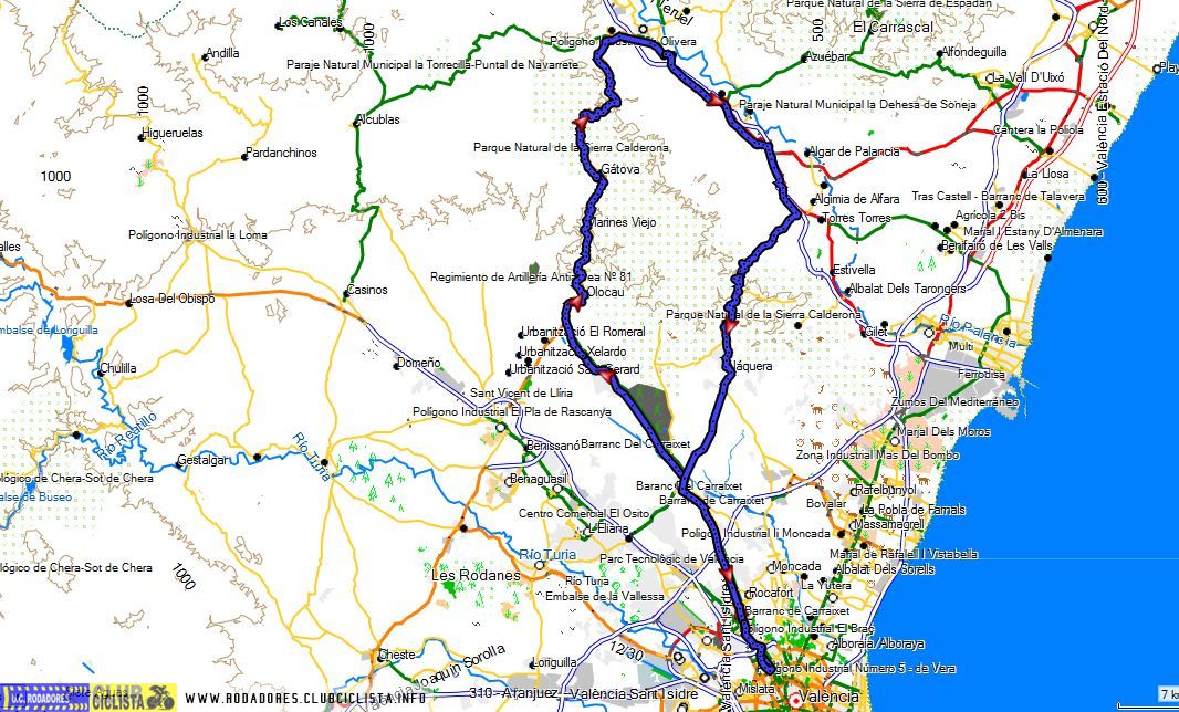 Vuelta: Soneja, Rda. Torres-Torres, Oronet 493 m, Serra, Náquera, Bétera, Burjassot.