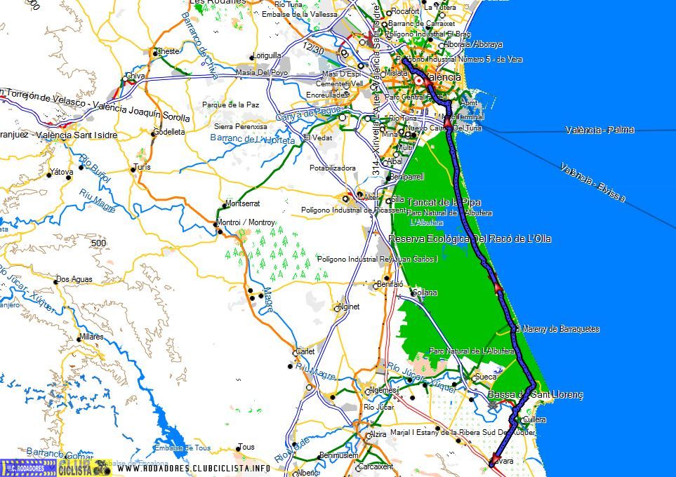 Vuelta: N332, Mareni de San Llorenç, El Perelló, El Saler, Benicalap