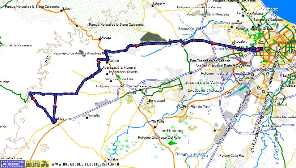 Vuelta: Camí de Casinos, urb. Romeral, Marines, Bétera, Burjassot, Benicalap.
