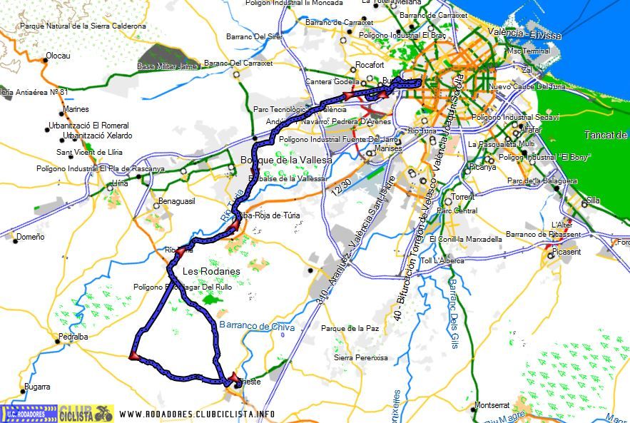 Vuelta: Villamarxant, Riba-Roja, San Antonio, L´Aldana, Burjassot,Benicalap.