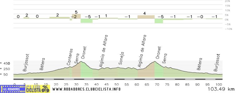 | Oronet por Serra ![]() | 3,08 km | 163 m | 5,3 % | 6 % | 499 m | 25 | Asfalto óptimo |