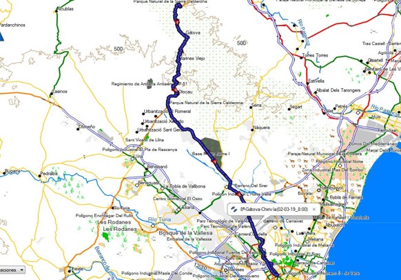 Ida: Burjassot, Olocau, Marines, Gátova, Chirivilla, (Gátova, Bar la Fuente Tel. 964 12 60 08)