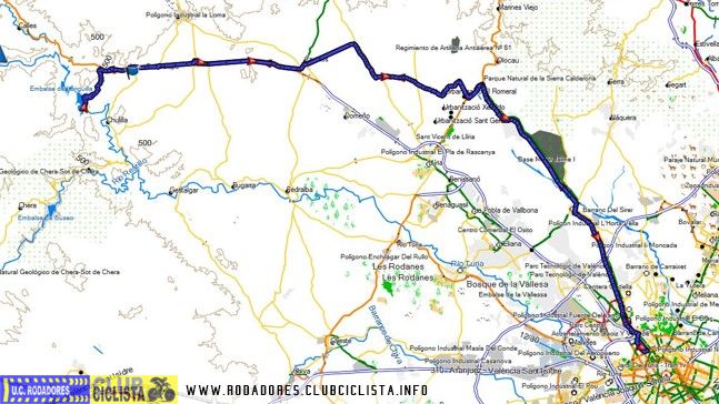 Ida: Burjassot, Marines, Urb. El romeral, Casinos, La Sabineta 456 m, Losa del Obispo, Opcional La Presa.