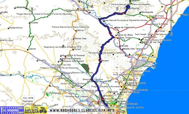Vuelta: Soneja, Rda. Torres-Torres, Oronet 493 m, Náquera, Burjassot, Benicalap.