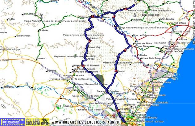 -Ida: Burjassot, Bétera, Náquera, Serra, Oronet 493 m, Soneja, CV-2181, Almedijar, Puerto 795 m, 8 (Almedijar Rte. C. Viñado Tel. 619 95 99 62)