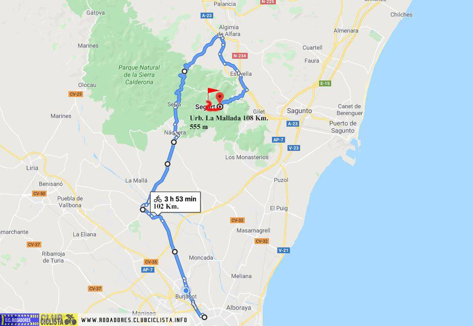 Vuelta: Estivella, Torres-Torres, Oronet, Náquera, Burjassot.