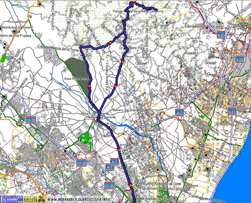 Ida: Burjassot, Bétera, Canteras, Serra, Oronet 494 m., El Garbí 595 m. (Oronet El Collao Tel. 961688774-671247119)