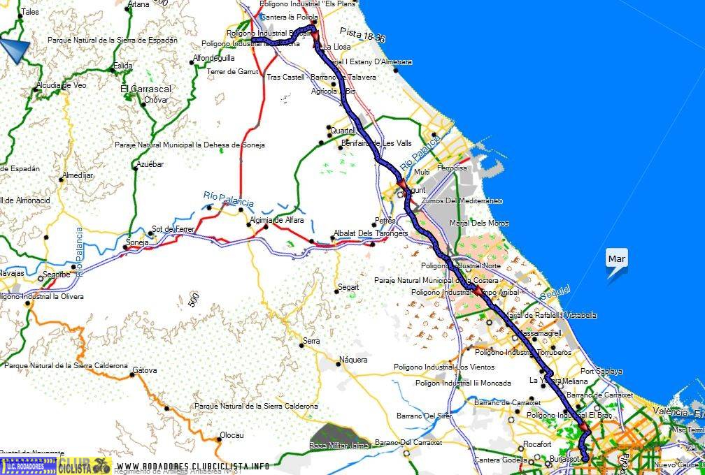 Vuelta: Almenara, Sagunto, Puzol, Masamagrell, Meliana, Tavernes Blanques, Benicalap.