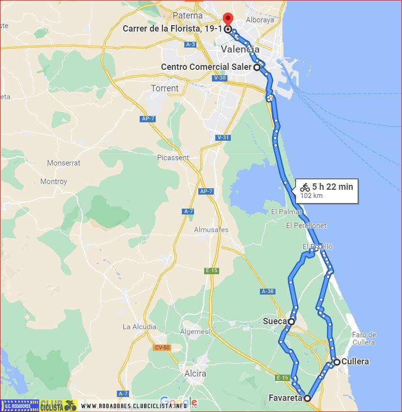 Benicalap – El Saler – El Palmar – Sueca – Favara – Cullera – El Saler – Benicalap