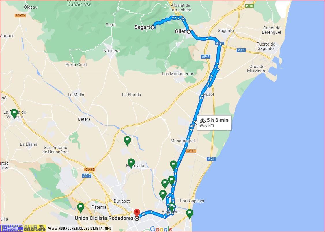 Benicalap – Puçol – Calderona – Segart/Garbí (Opcional) – Segart – Camí de Llíria – Puçol – Benicalap