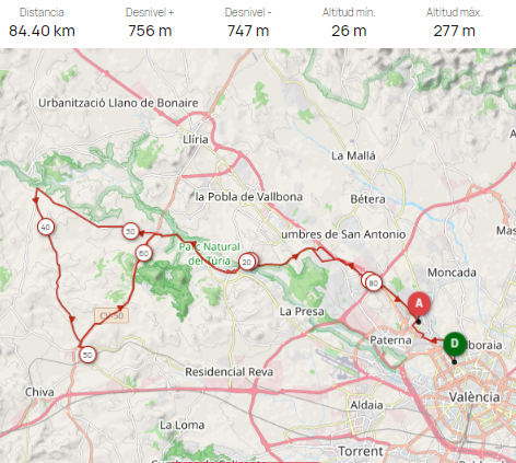 VUELTA: CV-50, VILLAMARCHANTE, RIBARROJA, SAN ANTONIO, BURJASSOT