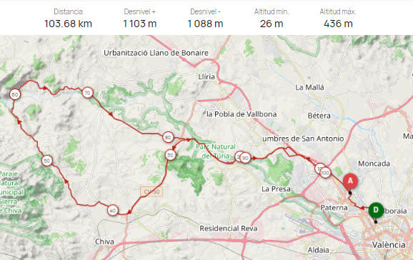 -Vuelta: Burgarra, Pedralba, Villamarchante, Burjassot, El Arco.
