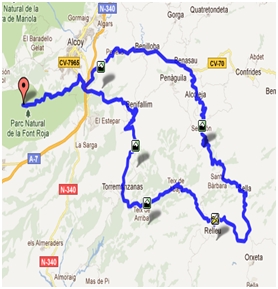 Etapa reina, con dos versiones para que esté AL ALCANCE DE LOS DOS GRUPOS. Etapa sinigual, totalmente recomendable para quienes disfruten del auténtico cicloturismo. Como novedad, se incluye la ascensión a la Font Roja para el primer grupo.
