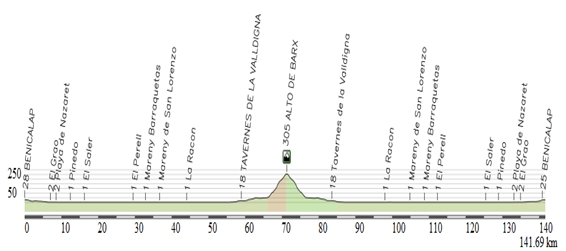 ¡Ojo! Comenzamos con una de serie de etapas en las que las salidas de los grupos A (07:15) y B (07:30) se desfasan un cuarto de hora para no retrasar demasiado la llegada del grupo A al almuerzo. Básicamente, jornada llana, con la única dificultad del Alto de Barx para el pelotón delantero.