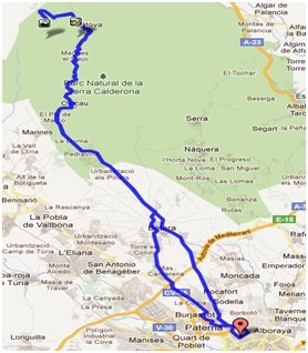 km LUGAR DE PASO 0 Sede Portalet 5 Burjassot (fin neutralización) 11 Mas Camarena 15 Bétera 32 Olocau 43 Gátova 46 Fuente del Rebollo (PM 2ª Categoría) 49 GÁTOVA (Almuerzo) 60 Olocau 77 Bétera (parada reagrupamiento) 82 Club de Tenis 90 Sede Portalet