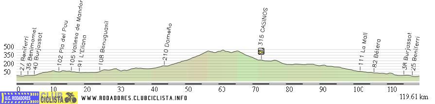 NOTA ACLARATORIA: En la reunión del pasado viernes 15 de marzo se acordó cambiar el recorrido de esta ruta a la ida, de manera que se llegue a Casinos por L'Andana, Vilamarxant y Pedralba.