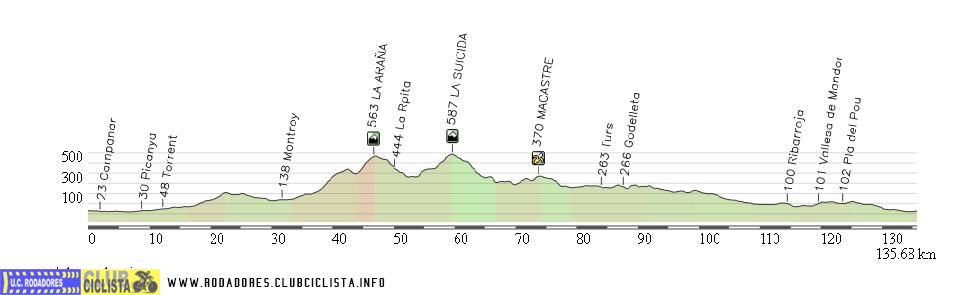 OPCIÓN A: BENICALAP - TORRENT (fin tramo neutralizado Grupo A) - MONTROI - LA ARAÑA (reagrupamiento) - DOS AGUAS - LA SUICIDA (reagrupamiento) - MACASTRE (Almuerzo). GODELLETA - CHESTE - VILAMARXANT - L'ANDANA (reagrupamiento) - BENICALAP.
