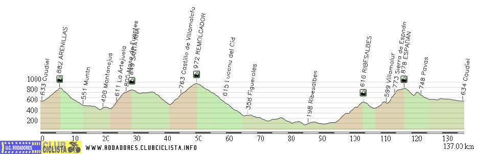 Es una etapa de dificultad similar a las vividas en Alcoy y Ademuz en 2012, en lo que a desnivel se refiere. Como viene siendo habitual en este tipo de etapas, trataremos de rodar lo más agrupados posible y disfrutar de un gran día de cicloturismo.