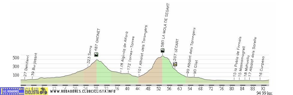La etapa es circular, ascendiendo el Oronet a la ida, y regresando por Puçol.