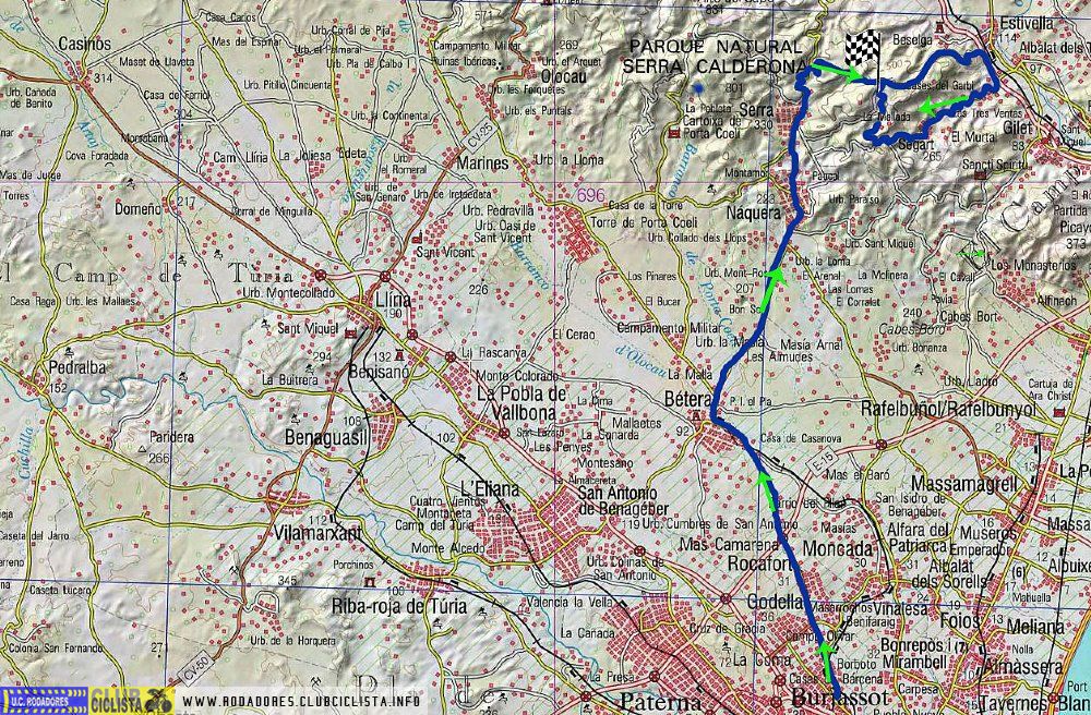 OPCIÓN B: BENICALAP - BÉTERA - SERRA - ORONET - ROTONDA TORRES TORRES