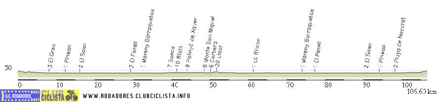 Se vuelve a Benicalap por Favara y Cullera, realizando un recorrido muy similar al que antiguamente tuvo la Marcha Cicloturista Ciutat de València.