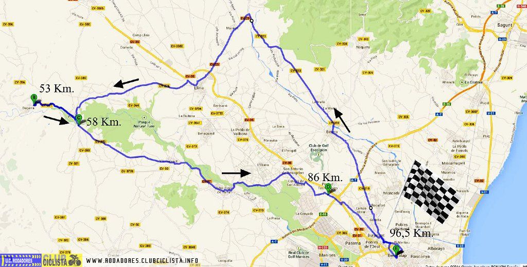 OPCIÓN A: BENICALAP - BÉTERA (fin tramo neutralizado Grupo A) - MARINES NOU - LLÍRIA - PEDRALBA - ALTO DE BUGARRA - PEDRALBA (Almuerzo). RIBARROJA (reagrupamiento) - L'ANDANA (reagrupamiento) - BENICALAP.