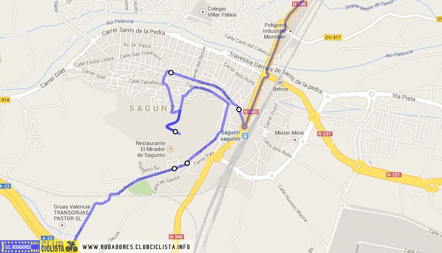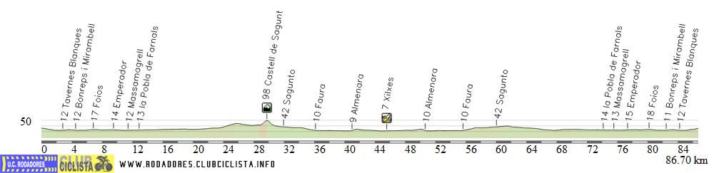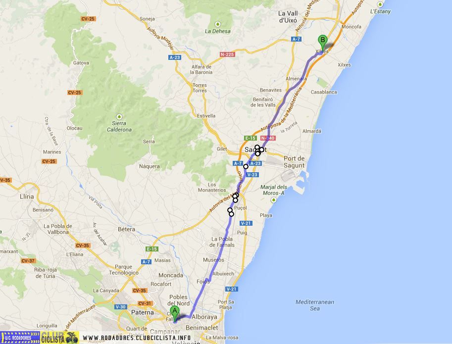 OPCIÓN B: BENICALAP - PUÇOL - CAMÍ DE LLÍRIA - SAGUNTO - XILXES (Almuerzo). SAGUNTO - CAMÍ DE LLÍRIA - PUÇOL - CASES DE BÀRCENA (reagrupamiento) - BENICALAP. (83 km)