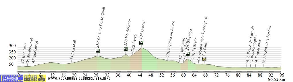 OPCIÓN B: BENICALAP – MAS CAMARENA - CANTERAS - ORONET - GILET (Almuerzo). SAGUNTO - CAMÍ DE LLÍRIA - PUÇOL - CASES DE BÀRCENA (reagrup.) - BENICALAP. (83 km)