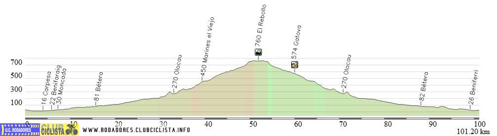 | Fuente El Rebollo por Gatova ![]() | 15,31 km | 473 m | 2,8 % | 16 % | 579 m | 73 | Asfalto irregular Asfalto óptimo |