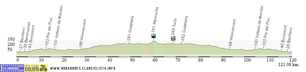 OPCIÓN B: BENICALAP - L'ANDANA (fin tramo neutralizado Grupo A) - VILAMARXANT – CHESTE (reagrupamiento) - GODELLETA - TURÍS (Almuerzo). CHESTE - RIBARROJA (reagrupamiento) - L'ANDANA (reagrupamiento) - BENICALAP. (103 km)